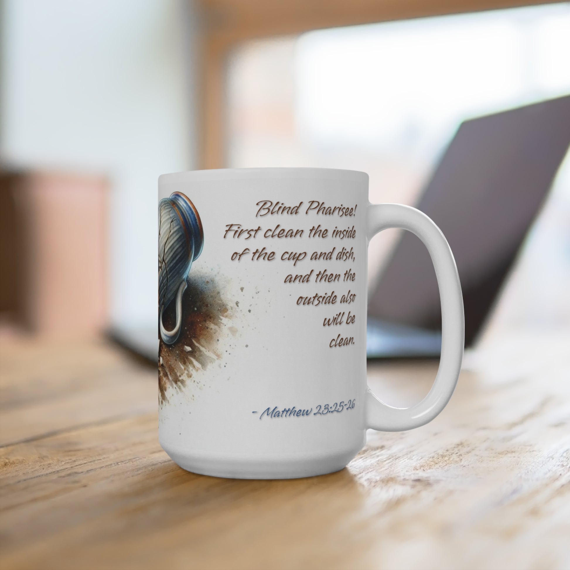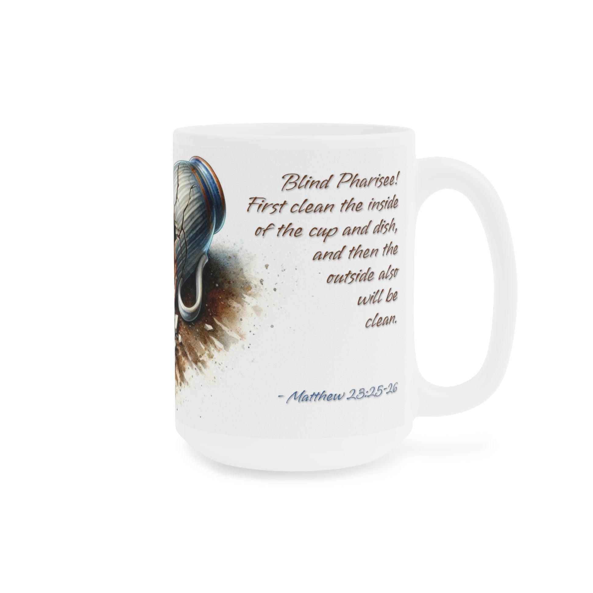 .: Right side: "Blind Pharisee! First clean the inside of the cup and dish, and then the outside will also be clean. -Matthew 23:25-26"