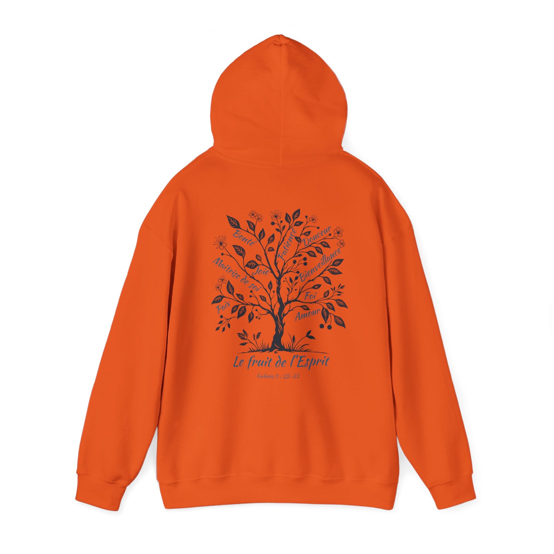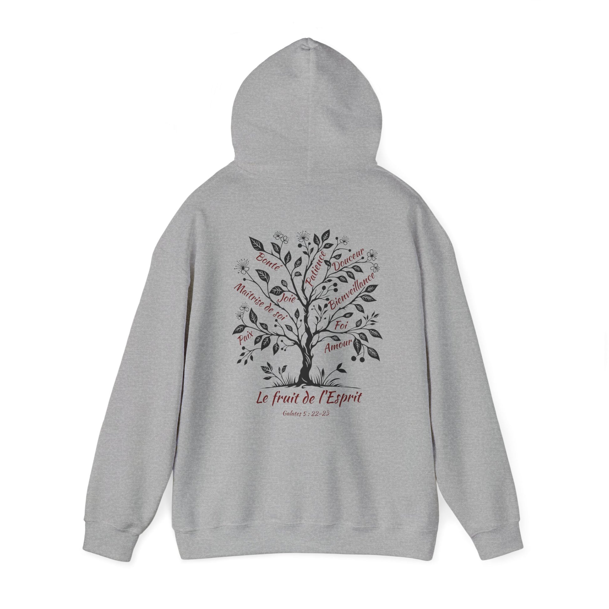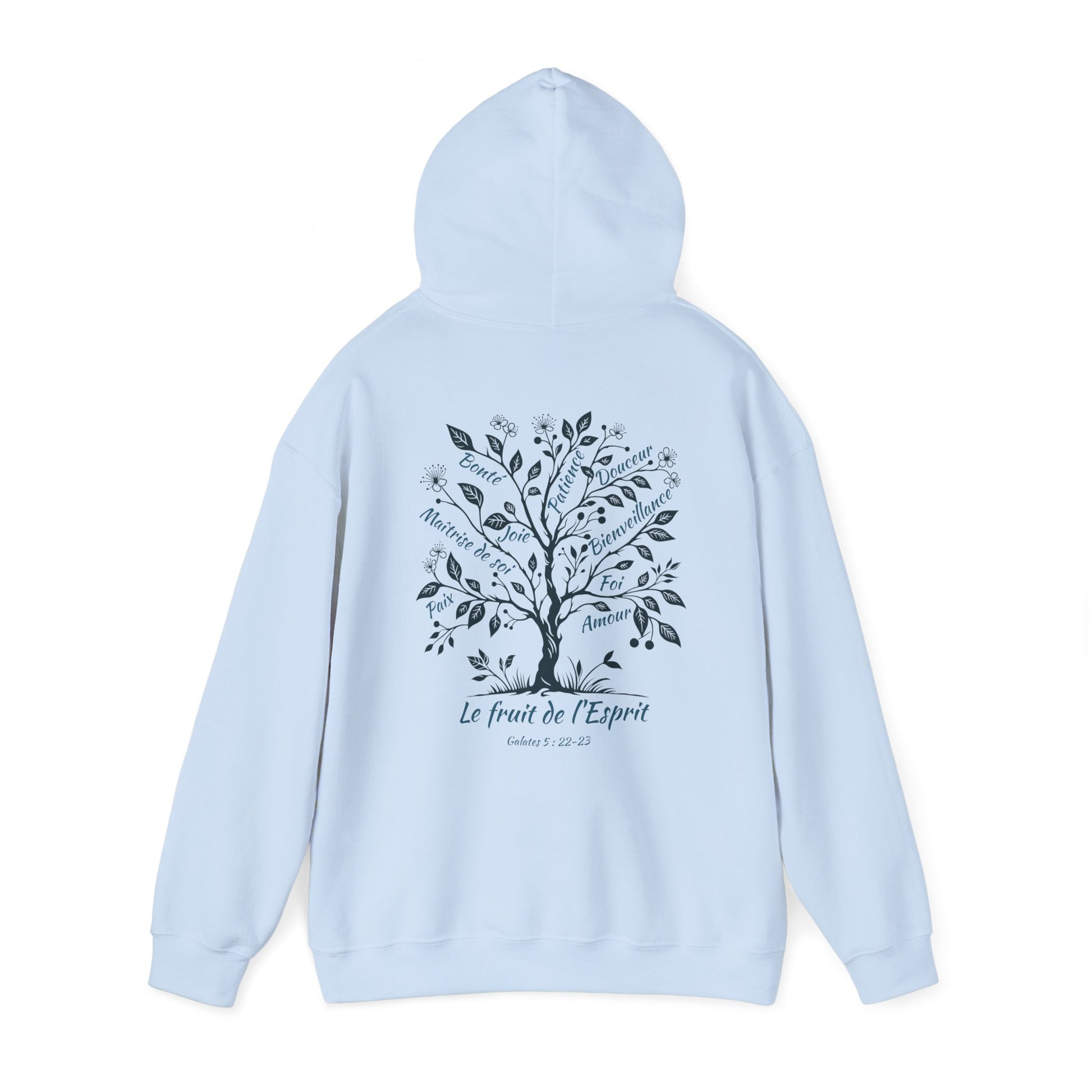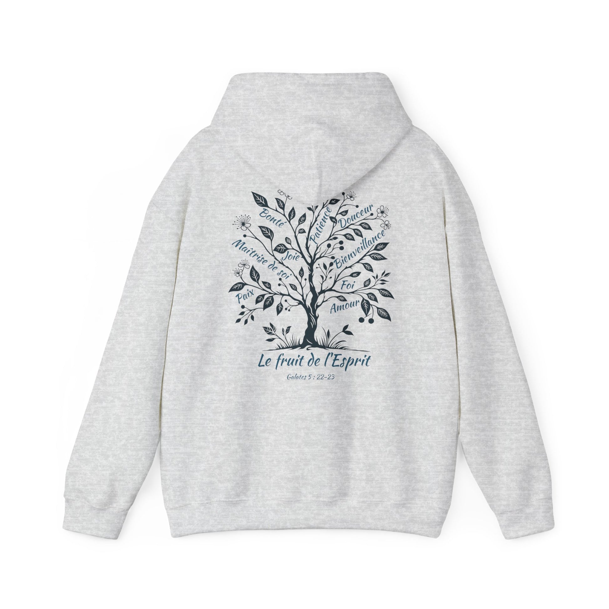 .: Back: A tree with the following words as fruits "Bonté, Patience, Douceur, Joie, Bienveillance, Maîtrise de soi, Foi, Paix, Amour" Sous l'arbre est écrit "Le fruit de l'Esprit [Galates 5:22-23]"