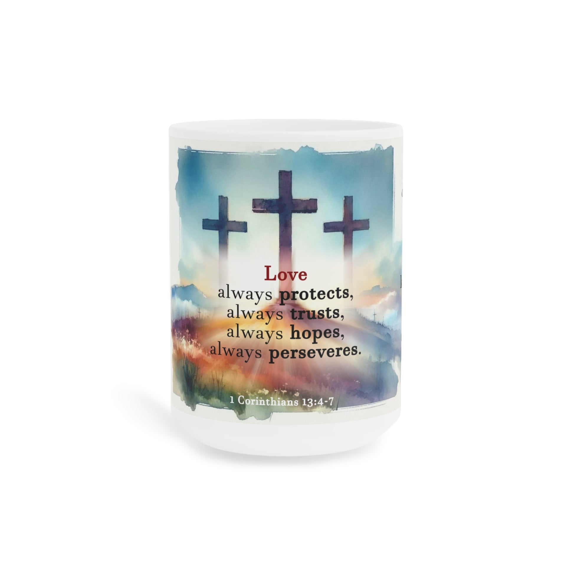 .: Center: "Love always protects, always trusts, always hopes, always perseveres. 1 Corinthians 13:4-7"