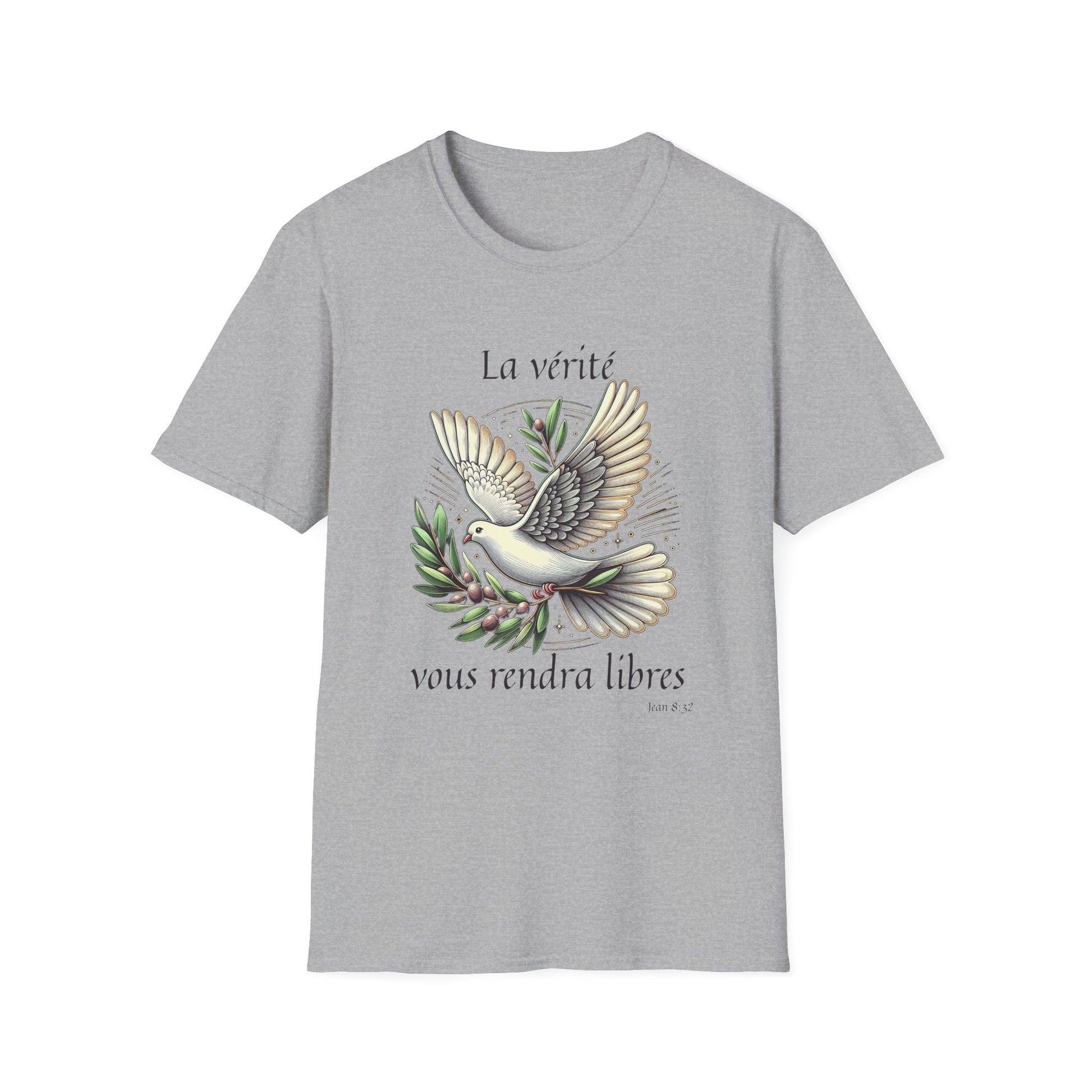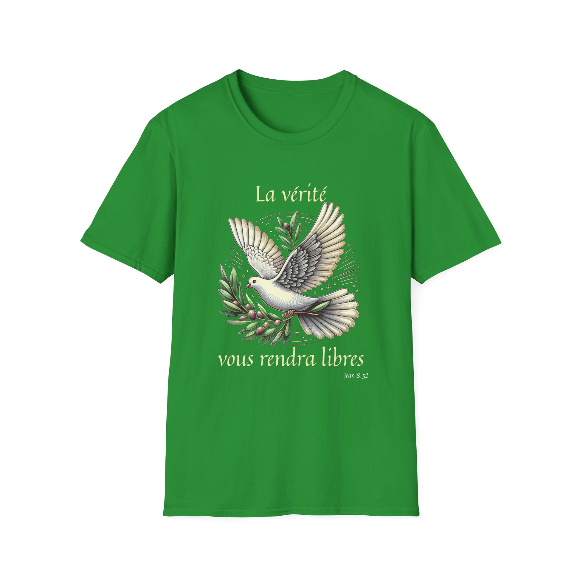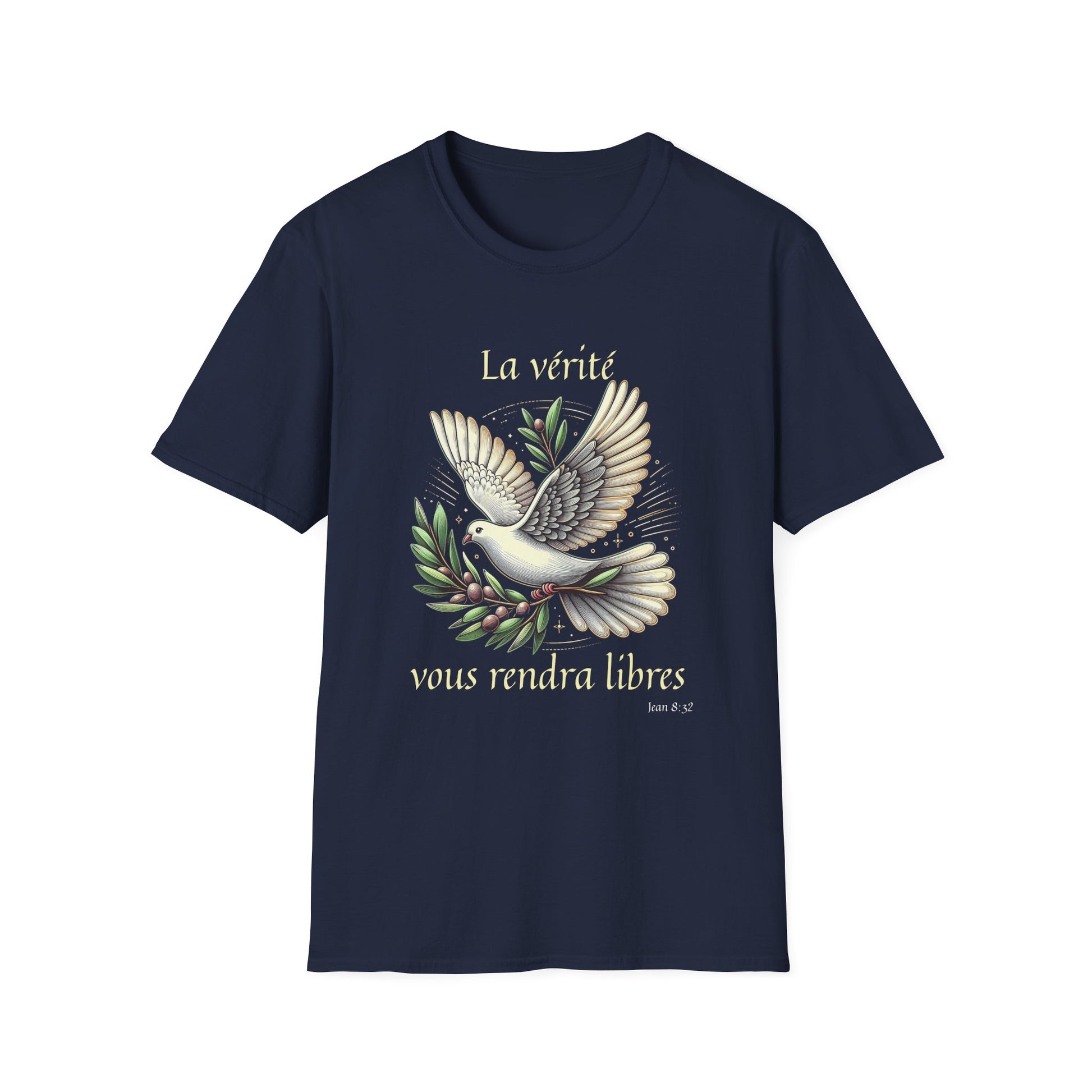 .: Front: A dove carrying an olive branch. The text reads "La vérité vous rendra libres [Jean 8:32]"